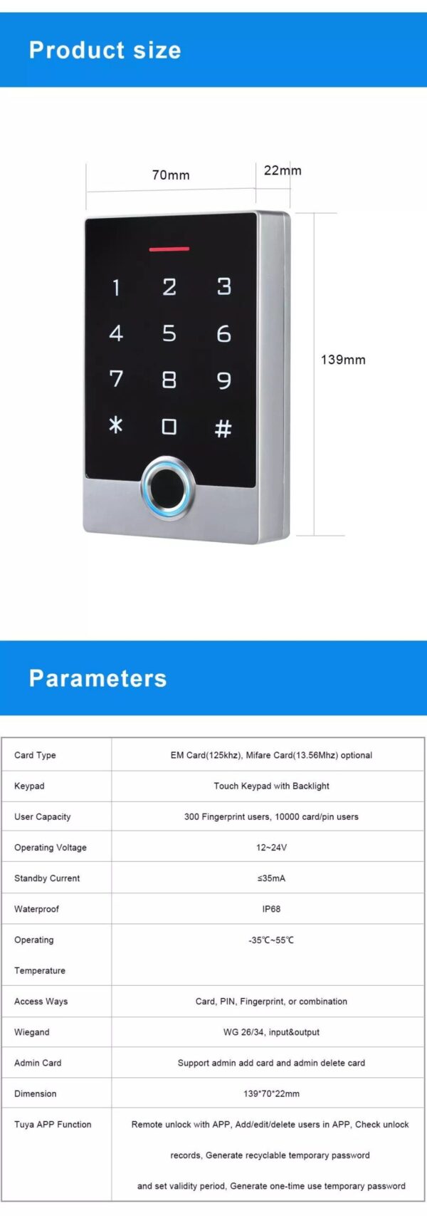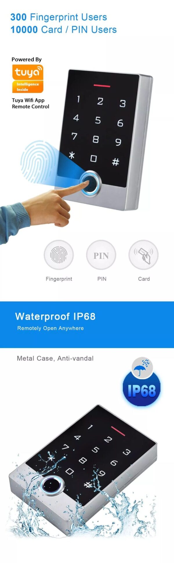 DF3 Access Control | Tuya powered Waterproof IP68 Fingerprint/Card/Password Access Control