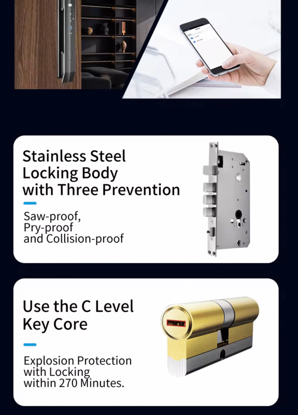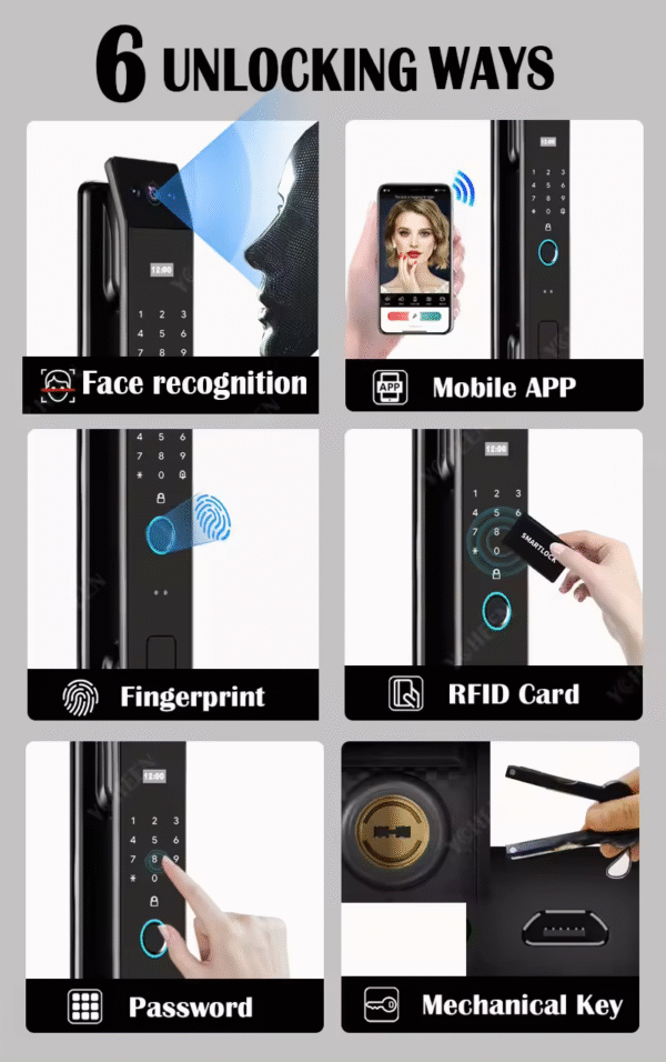 Lentric LT-DF14-Face Security Lock | Tuya WIFI powered Intelligent Fingerprint/Card/Password Phone Controlled Smart Lock